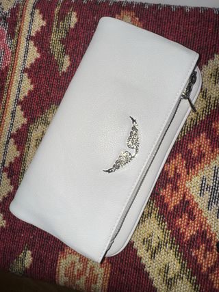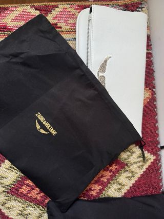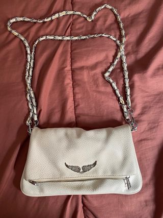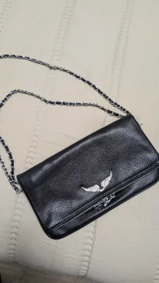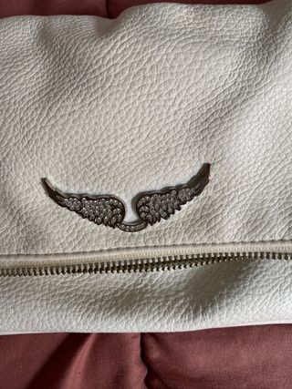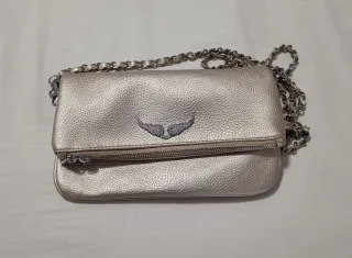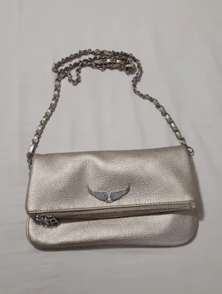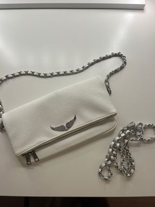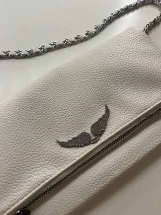 Elegante bolso de Zadig & Voltaire. Usado pero en buen estado. - Diseño plegable. - Adorno de alas plateadas. - Cadena metálica. - Cierre de cremallera. - Original. - Con funda incluida.