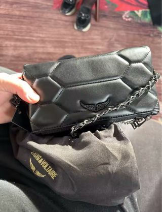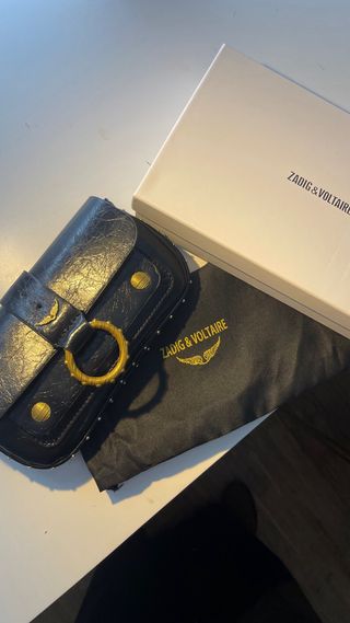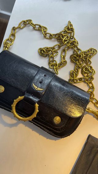 Bolso original de Zadig & Voltaire en color negro con el icónico logo de alas doradas. Cadena metálica dorada con detalle trenzado en piel. Muy elegante y fácil de combinar, perfecto tanto para diario como para salir. Está en perfecto estado general, con leves signos de uso normales. Cremallera funcionando perfectamente. 👜 Color: negro 🔗 Cadena dorada para llevar al hombro o cruzado ✨ Logo de alas metálicas 📏 Tamaño compacto, ideal para móvil, cartera y llaves Costó más de 300€ nuevo. 💰 Precio: 225 (negociable) Entrega en mano en Valencia o envío por Wallapop.