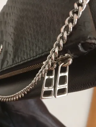 Bolso de piel con un diseño moderno y detalles únicos. Bastante usado - Material: Piel texturizada. - Color: Negro. - Adorno metálico con alas. - Cadena metálica. - Cierre de cremallera. Si compras tres artículos te regalo uno de los que tengo a la venta con valor de 5€ Mientras no confirmes la reserva el artículo sigue a la venta .NO HAGO ENVÍOS POR WALLAPOP SOLO ENVIO A LA PENÍNSULA HAGO ENVÍOS a partir de 20€ El envío de todo lo que compres sale 6€ Los envío solo los hago a través de la agencia Tip-sa con número de seguimiento