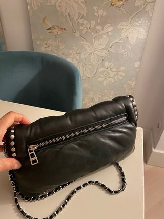 Bolso pequeño de la marca Zadig & Voltaire. - Diseño compacto y moderno. - Cadena metálica para llevar al hombro o cruzado. - Detalle de tachuelas en los bordes. - Cremallera frontal.