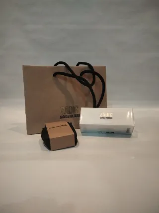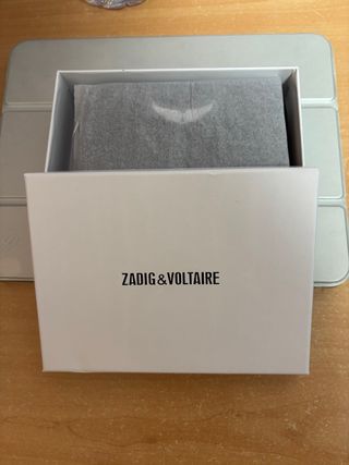 Elegante bolsa de regalo de la marca Zadig & Voltaire. - Color gris. - Asas de cordón negro. - Diseño minimalista con logo discreto.