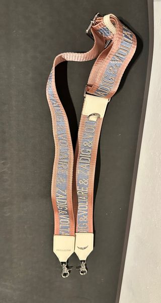 Correa de repuesto para bolso de la marca Zadig & Voltaire. - Diseño con logo de la marca tejido en tonos rosa y azul. - Terminales de cuero con mosquetones metálicos.