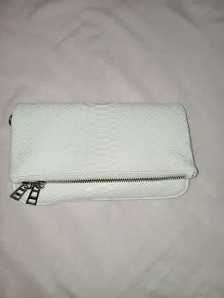 Bolso Clutch Blanco Estampado Serpiente
