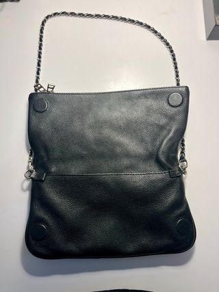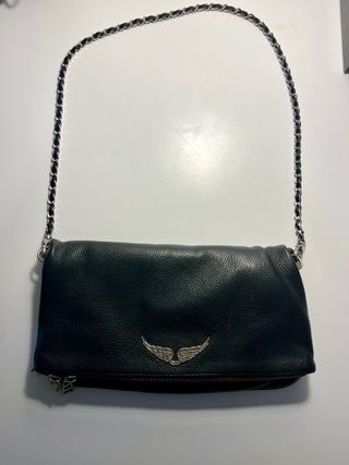 Precioso bolso bandolera de la marca Zadig&Voltaire. Es de color negro y tiene un diseño elegante y sofisticado. - Asa corta de cadena metálica. - Cierre de cremallera. - Detalle de alas en la parte delantera. - Material: Piel sintética.