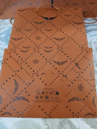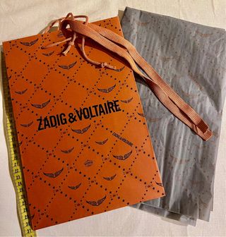 Bolsa de la marca Zadig & Voltaire con un diseño distintivo. 38,5 x 31 cm ideal regalo o regalar bolso rock, rocky, accesorio, billetera, cinturón, ropa... ! - Color naranja con estampado. - Incluyo papel de seda gris con el mismo estampado de tienda perfil top !!! envío rápido y bien protegido 100% fiable ver mis valoraciones a estrenar