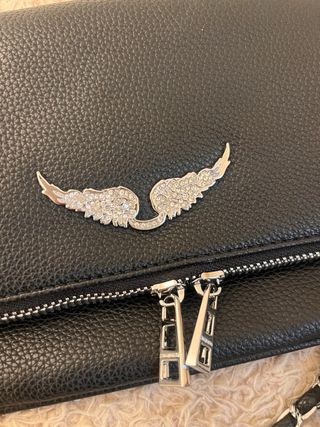 Bolso de mano Zadig & Voltaire piel texturizada impecable (usado una sola vez) y elegante. - Diseño con detalle de alas plateadas. - Cremallera frontal. - Cadena plateada para llevar al hombro o cruzado. Puedes venir a verlo sin compromiso (Barcelona, metro Fontana).