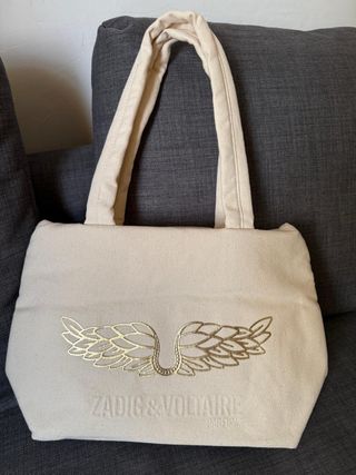 Bolso de mano Zadig & Voltaire con un diseño elegante. - Color beige con detalles plateados. - Adorno de alas plateadas en la parte frontal. - Cierre de cremallera con tiradores. - Correa ajustable y extraíble. - 2 Correas diferentes