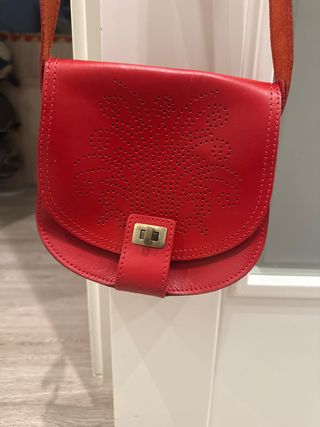 Bolso de Zara en color rojo. - Material: Piel sintética. - No lleva cremallera de cierre, es un imán. - Dos asas. - Bolsillo interior con cremallera - Interior de tela color crudo - Sin estrenar