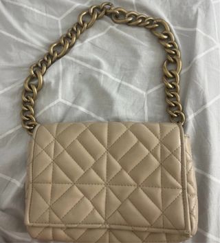 Bolso acolchado de Zara en color crema. Diseño moderno y elegante. - Acolchado con patrón de espiga. - Cierre metálico. - Asa de cadena combinada. Bolso acolchado Marca Zara Color crema Utilizado dos veces una marca en una de las fotos