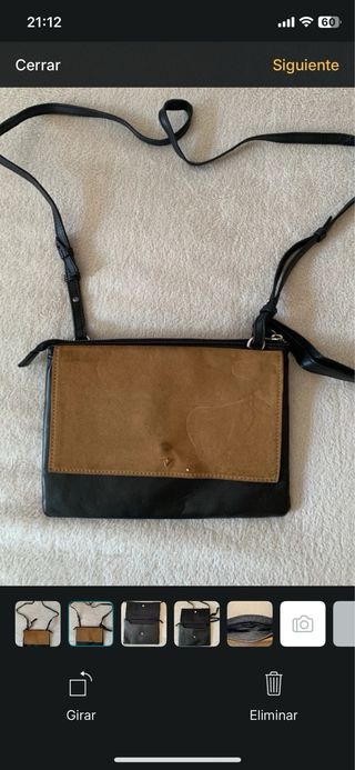 Bolso bandolera de Zara en color amarillo. - Cierre de solapa con broche metálico. - Asa superior y correa ajustable. - Dos compartimentos y bolsillo interior - No es a estrenar tiene algo de uso, algun defecto menor . aunque esta en buenas condiciones