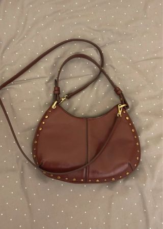 Bolso de piel ante de Zara Studio, edición limitada. - Diseño con tachas metálicas. - Detalles en dorado y plateado.