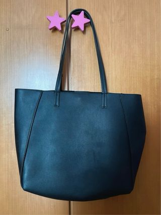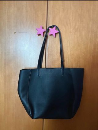 Bolso shopper de color negro de la tienda Zara. Tiene un compartimento grande en el centro con cierre de cremallera. Como nuevo: solo ha sido utilizado una vez. #shopper #bag #woman #casual #basic #black #new #Zara - Asas de mano. - Detalle de costuras verticales.