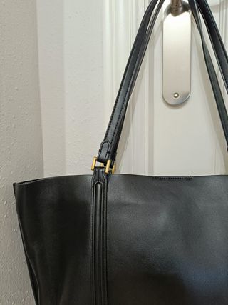 Bolso grande de Zara en color negro. Un diseño espacioso y versátil. - Cierre: Cremallera. - Asas largas para llevar al hombro.