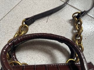 Bolso pequeño de Zara con un diseño moderno y elegante. - Acabado brillante. - Correa de cadena. - Cierre de solapa.