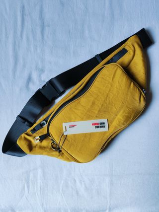 Riñonera tamaño MAXI (es súper grande) de Zara, ideal para viajar, en color mostaza. Trae dos compartimentos amplios con cremallera y forrados por dentro con tejido impermeable. La correa es ajustable. Edición limitada fabricada con tejido reciclado de tacto suave. En perfecto estado, sin estrenar.