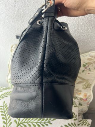 Bolso tipo bombonera de piel de Zara. - Diseño con perforaciones. - Cierre de cordón. - Asa larga ajustable.