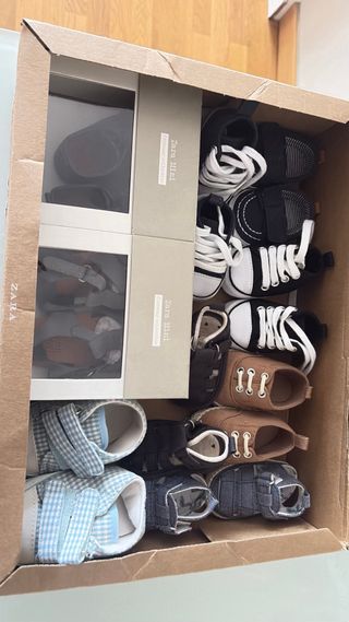 Se vende un lote de 4 bolsas grandes con ropa variada para bebé y calzado - Tallas de 0 a 12 meses. - Variedad de prendas.
