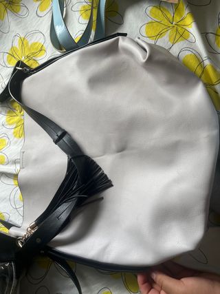 Precioso bolso de mano de color beige y gris. Es grande y espacioso, perfecto para el día a día. - Asa de mano. - Diseño elegante y sencillo. - Material de alta calidad.