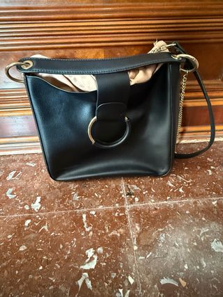 Bolso de mano, hombro o bandolera de Zara. - Diseño tipo cubo. - Asa de mano. - Correa larga ajustable. - Detalle de anillas metálicas doradas.
