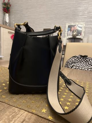 Bolso Zara, como nuevo, usado una vez. Negro y por dentro azul, es rígido. Tiene bandolera para colgar q se quita si quieres y puedes llevarlo de las asas. Un pequeño descosido en el cierre. Muy amplio y cómodo!! Se entrega en mano, no hago envíos.