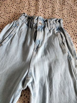 Vaquero azul clarito de Zara. Talla 32. Están prácticamente nuevos, de habérmelos puestos dos o tres veces. Los vendo porque me hacen bolsa y no me termino de ver con ellos.