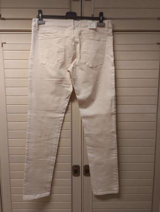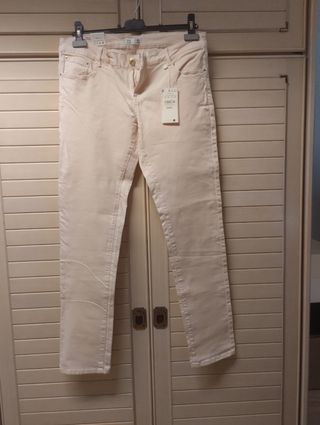 Pantalones vaqueros de mujer, color beige claro y talla M (38/10). Son de corte recto y parecen estar en perfecto estado. - Marca: Zara - Cierre con cremallera y botón - Bolsillos delanteros Según se ve en fotos. Mucha ropa, zapatos y bolsos en mi perfil. Muchos con la etiqueta puesta sin usar o una sola puesta. Todo en perfecto estado o nuevo. La mayoría talla 44 y zapatos 38.