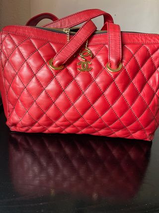 Precioso bolso rojo de CUERO-PIEL alto 22,5 ancho 32 grosor 12,5 cuanto más sube menos es el grosor Impecable.’va con su funda Se regala camisa lino Zara Tall L