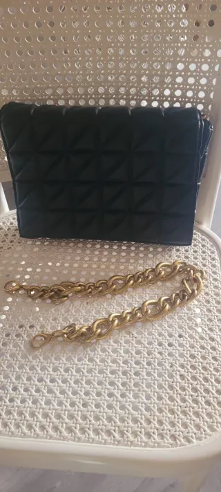 Bolso Zara negro con cadena dorada