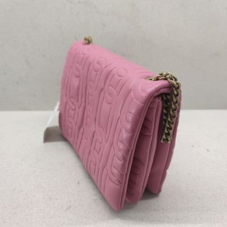 Bolso pequeño con un diseño brillante y detalles en rosa. - Cierre con cremallera. - Asa larga ajustable. - Adorno de smiley en la parte frontal.