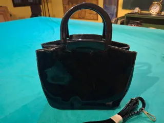 Elegante bolso de mano con acabado brillante. - Material: charol. - Asa superior. - Correa de hombro ajustable.