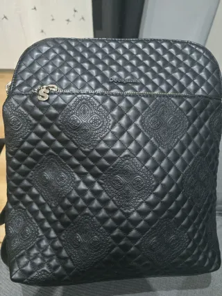 Bolso Desigual de color negro con un diseño acolchado. - Acolchado con patrón de rombos. - Detalle de estampado ornamental. - Cremallera superior.Poco uso
