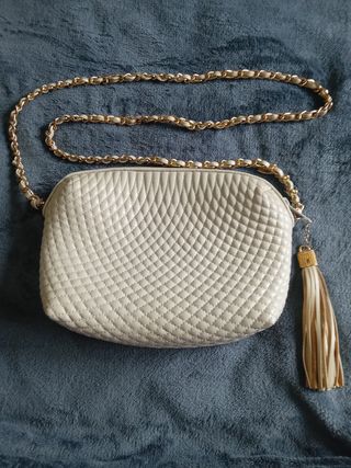 Bolso blanco y dorado para paseo, varios bolsos