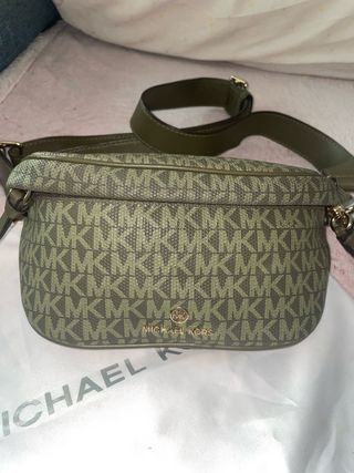 Bolso de Michael Kors con un diseño estampado en tonos verdes y olivas. El bolso cuenta con una correa ajustable para llevarlo cruzado o al hombro. - Estampado MK característico. - Detalle de logo metálico. - Correa de hombro ajustable.