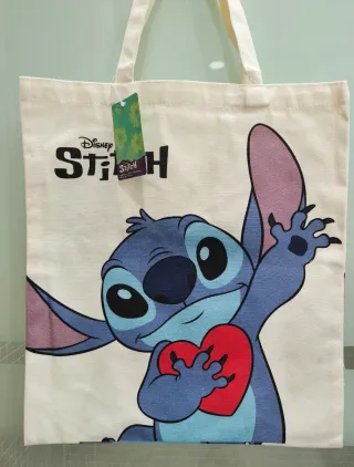 Nueva Práctica bolsa tote con un adorable diseño de Stitch de Disney, sosteniendo un corazón rojo. - Diseño: Stitch con corazón en ambos lados de la bolsa. - Material: Lona resistente. - Medidas: 38cm x 44 cm. No hago envíos, vendo por mi zona.