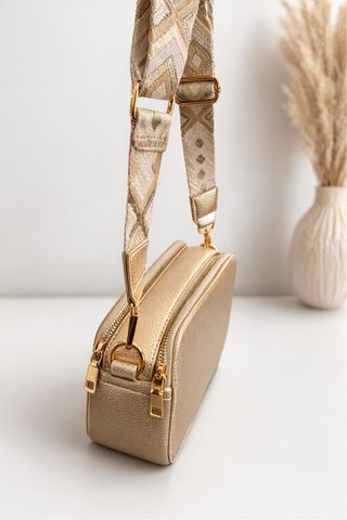 Bolso bandolera dorado con correa étnica