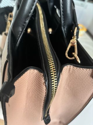 Bolso color rosa palo con tres compartimentos, uno de ellos con tarjetero. Correa larga. Ideal para móvil y monedero. Nuevo a estrenar