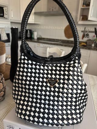 Bolso tous vintage, blanco y negro con correa ajustable. Tamaño de 22x25cm aprox.