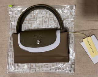 Bolso pequeño Le Pliage Green con asas. - Color verde. - Asa corta. - Cierre con cremallera y botón a presión.