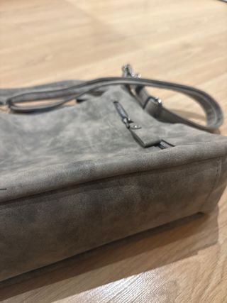 Bolso de estilo casual con un acabado que imita ante. - Cierre principal con cremallera. - Dos bolsillos exteriores con cremallera. - Correa ajustable para llevar al hombro o cruzado.