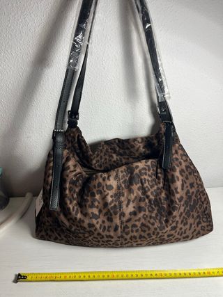 Bolso de mano con un llamativo estampado de leopardo. Sus asas negras le dan un toque elegante. - Estampado de leopardo. - Asas de color negro.