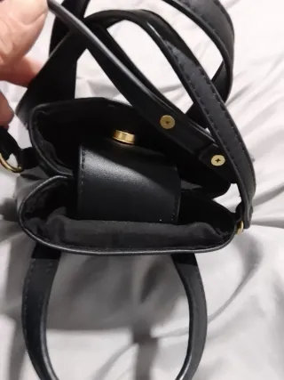 Bolso de la marca REAST STYLE, completamente nuevo. - Color negro. - Diseño con doble compartimento y cremalleras doradas. - Detalle de colgante con anillas doradas.