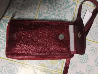 Mini bolso de la marca Silbon en color rojo metalizado. Nuevo, con etiqueta. Ideal para llevar lo esencial. - Diseño brillante. - Correa ajustable. - Cierre de cremallera.