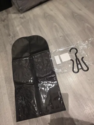 Práctica bolsa con percha para guardar extensiones. - Color negro. - Cierre de cremallera.