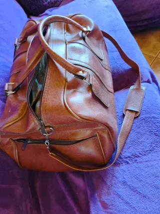 Bolso de viaje espacioso y elegante. - Material resistente. - Asas de cuero. - Cierre de cremallera.