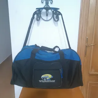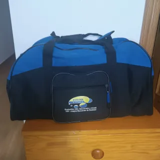 Práctica bolsa de deporte con un diseño moderno y funcional. - Compartimento principal espacioso. - Bolsillo frontal con cremallera. - Asas de mano y correa ajustable para hombro. - Logo de Euskadiko Kirolak y XXII Juegos Escolares de Euskadi. Recoger en Egia, Donostia.