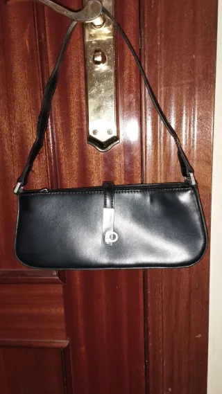 Bolso de mano con correa ajustable. - Diseño con solapa. - Cierre magnético - Bolsillo interior - Asa regulable - Medidas 23x17 cm