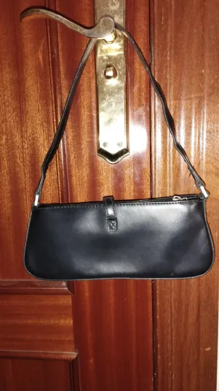 Precioso bolso pequeño, ideal para eventos o fiestas. Su diseño alargado y elegante lo hace muy versátil (dimensiones : 25 cm largo, 11 cm alto y 5 cm profundo). Tiene dos bolsillos interiores con cremallera y dos compartimentos adicionales. - Cierre de cremallera. - Asa fina. - Detalle metálico frontal.