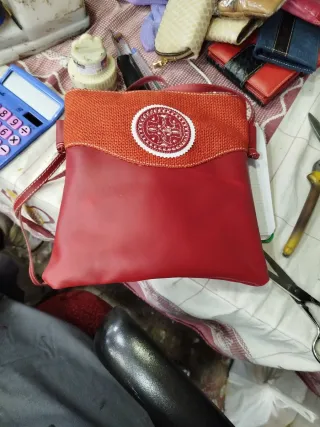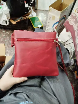 Bolso bandolera de piel en color rojo. interior de tela. bolsillo exterior e interior. Guardado en funda. Muy ligero y flexible, tiene asa larga para cruzar: ideal si tienes problemas de espalda porque no pesa. Traído desde EEUU Por mudanza he subido más bolsos, todos nuevos o semi-nuevos