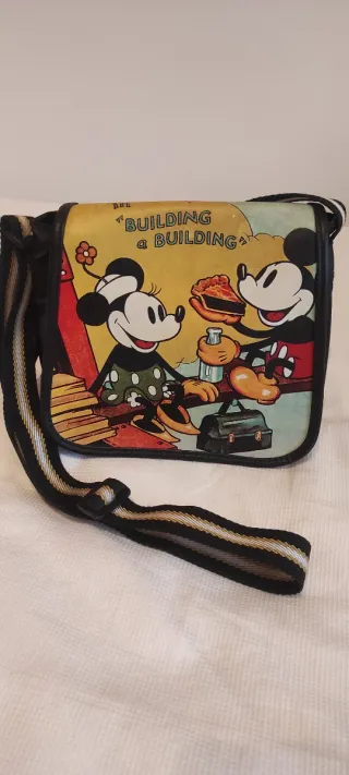 Bolso con diseño de Mickey y Minnie Mouse. - Sin usar. - Diseño multicolor. - Negro con solapa en color - Correa ajustable - Bolsillo interior