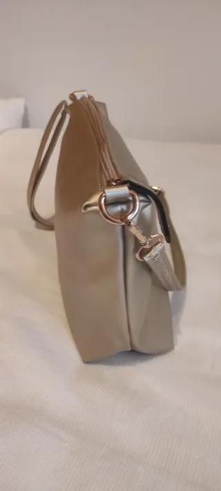Bolso de mujer dorado. Sin estrenar - Diseño elegante y moderno. - Correa ajustable. - Cierre de cremallera. - Bolsillo interior - Medidas 31x23 cm